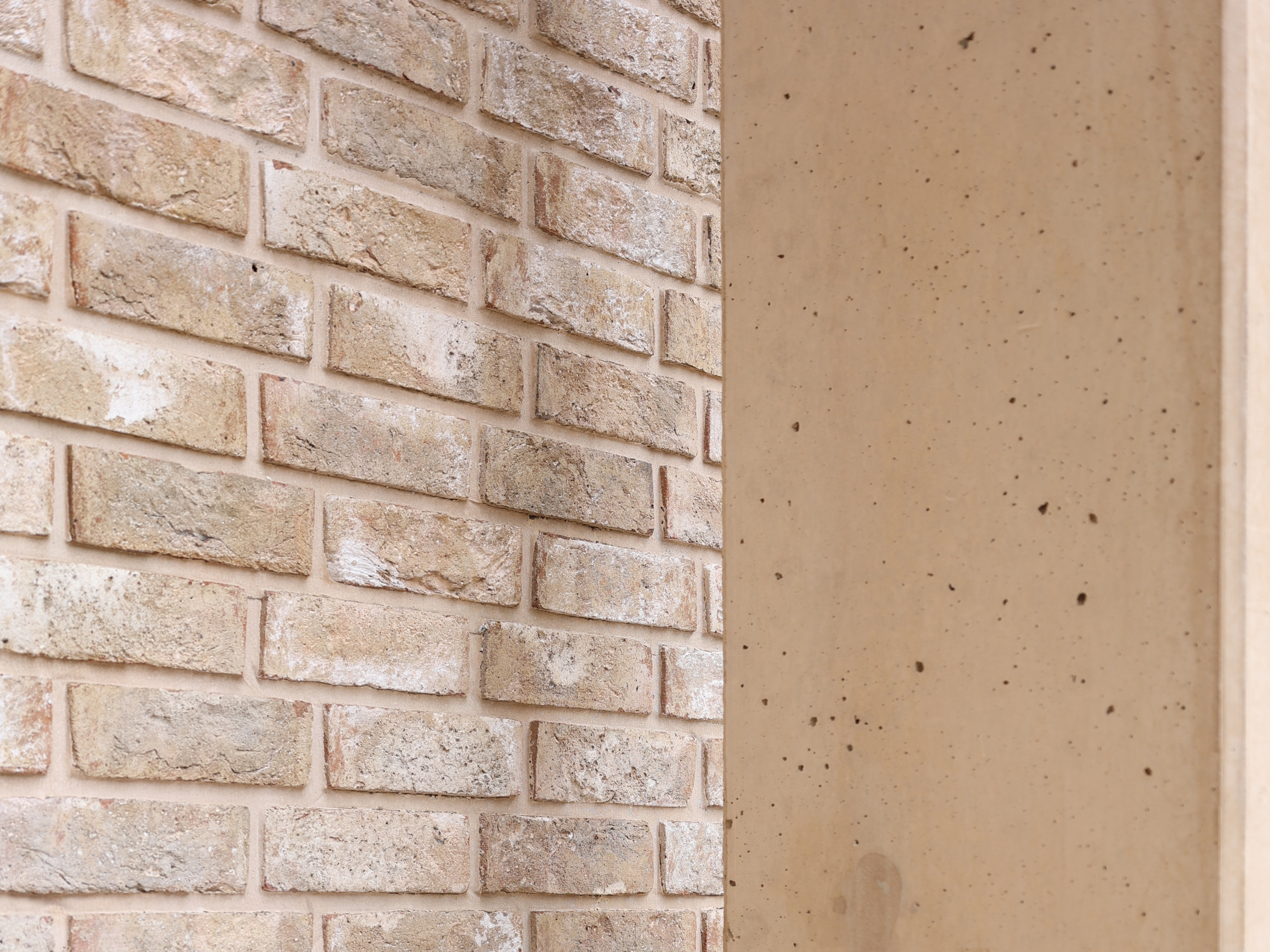 Etter et godt og langt samarbeidet med NCC, har vi utviklet et fasadesystem bestående av farget beige betong og innstøpte teglfelter.